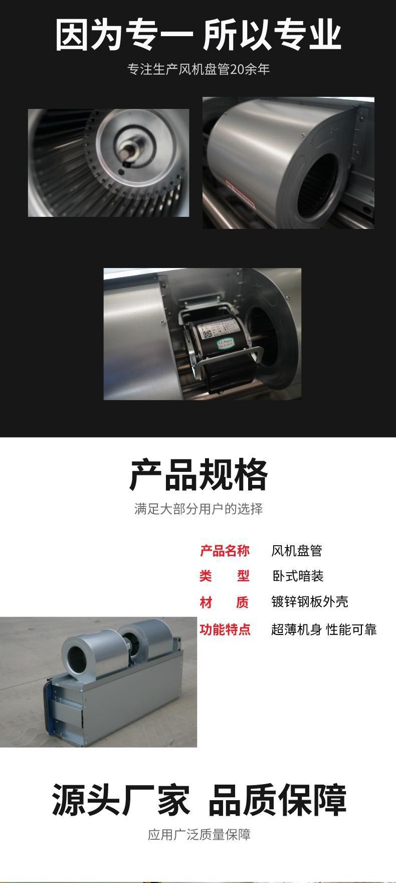 商用酒店用卧式暗装盘管办公室冷暖两用明装风机盘管 风盘源头厂家